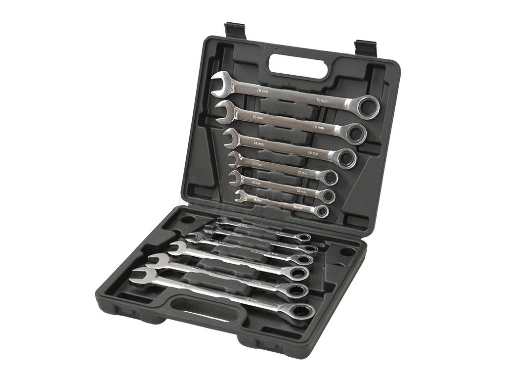 Ráčnové očkoploché klíče, velikosti 8-19 mm, sada 12 ks v kufříku - JTY-3003A