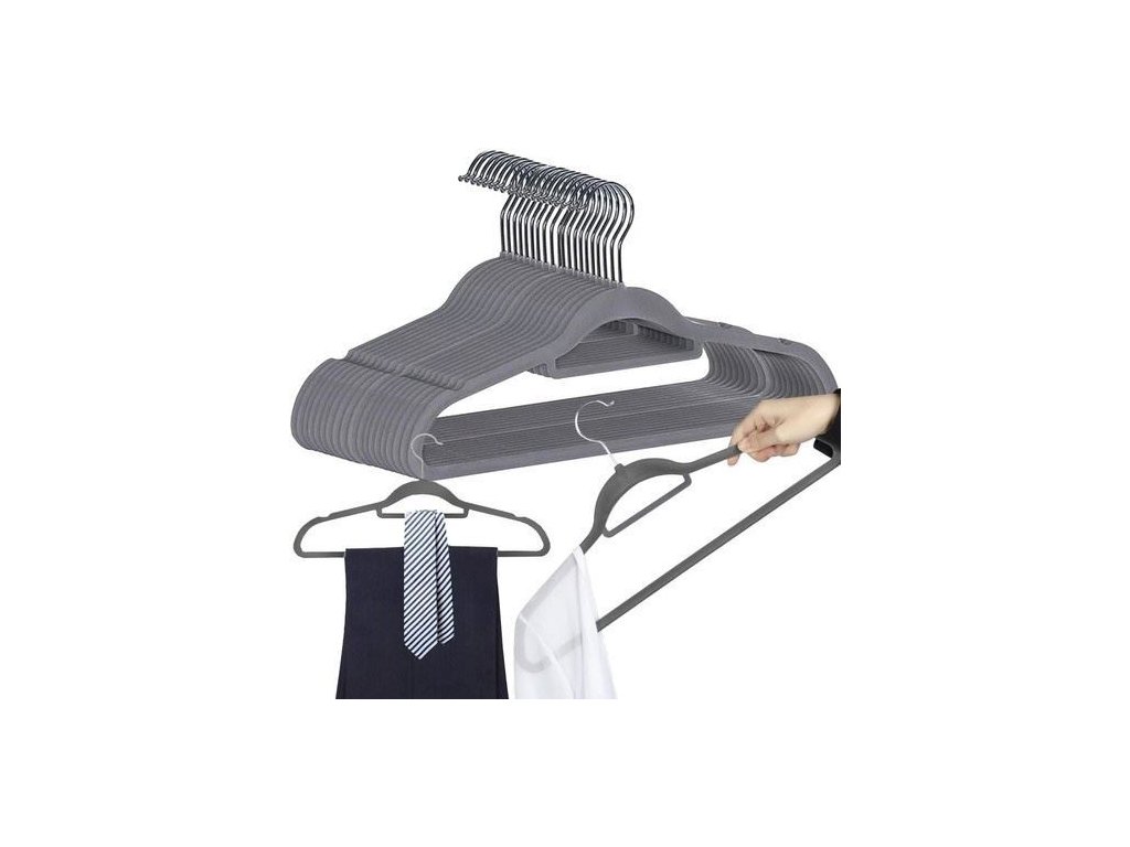Ramínka se sametovým potahem 20 ks, šedá, Ruhhy Věšáky se sametovým povrchem nabízejí protiskluzové, prostorově nenáročné a trvalé řešení pro zavěšení oblečení.Tento věšák je multifunkční, navržen tak, aby vyhovoval různým potřebám, takže na nějmůžete bezpečně zavěsit nejen saka nebo topy, ale naleznete také místo na kalhoty a kravaty..