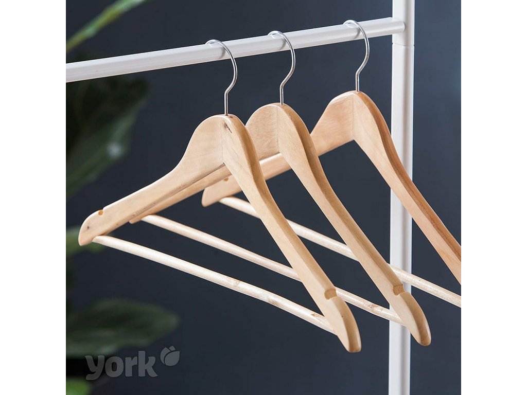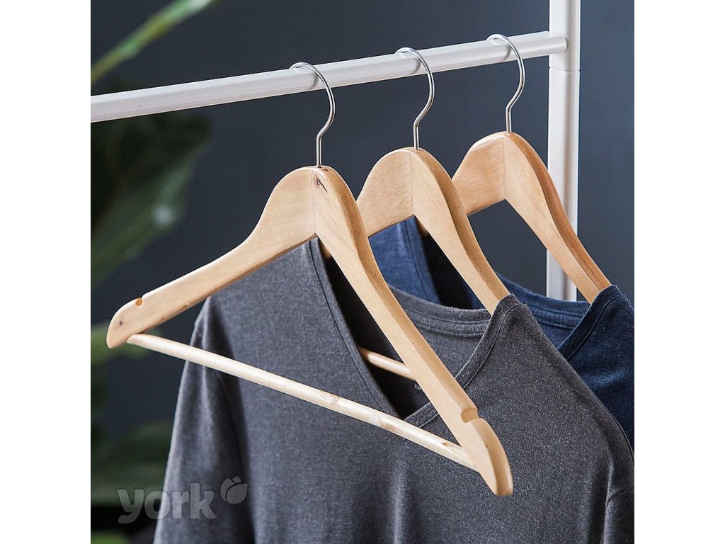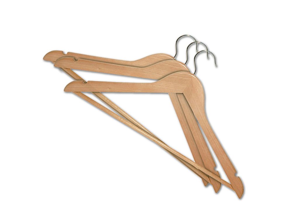 Sada 3 klasických, odolných dřevěných věšáků s kovovým úchytem.