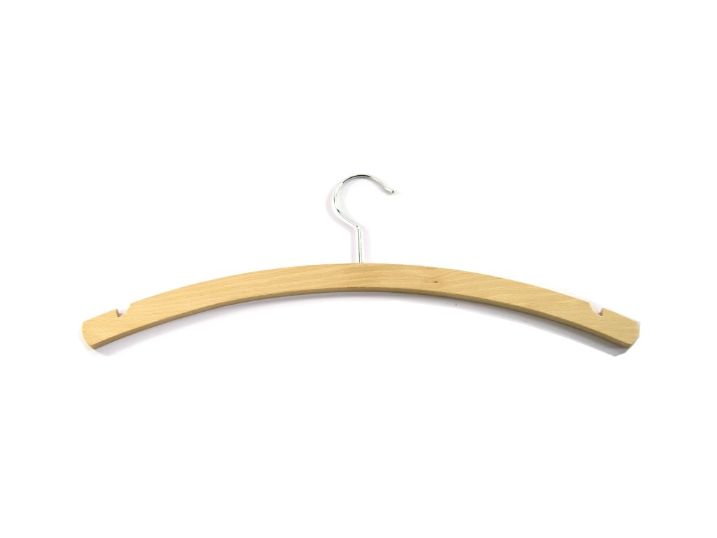 Šířka ramínka 42 cm.Zinkovaný otočný hák, voskovaný povrch, zářezy na koncích ramínka, bukové dřevo.