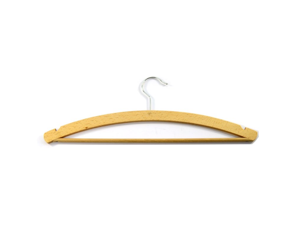 Zinkovaný otočný háček, zářezy na konci ramínka, bukové voskované dřevo.