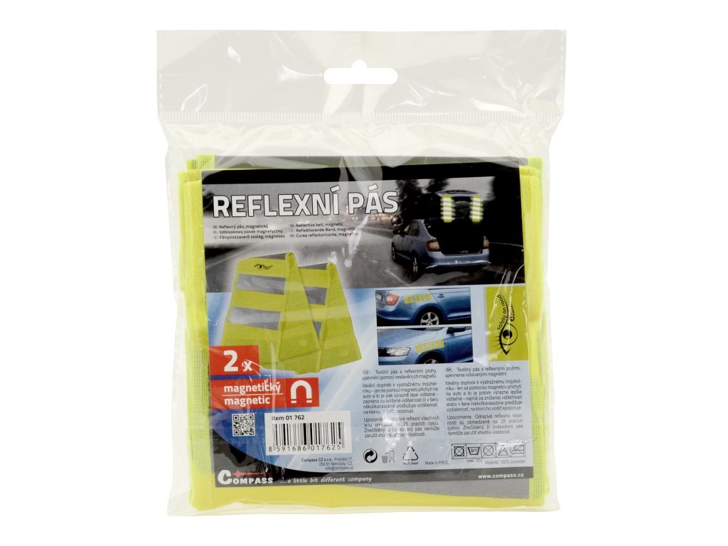 Textilní pás s reflexními pruhy, upevnění pomocí vestavěných magnetů.