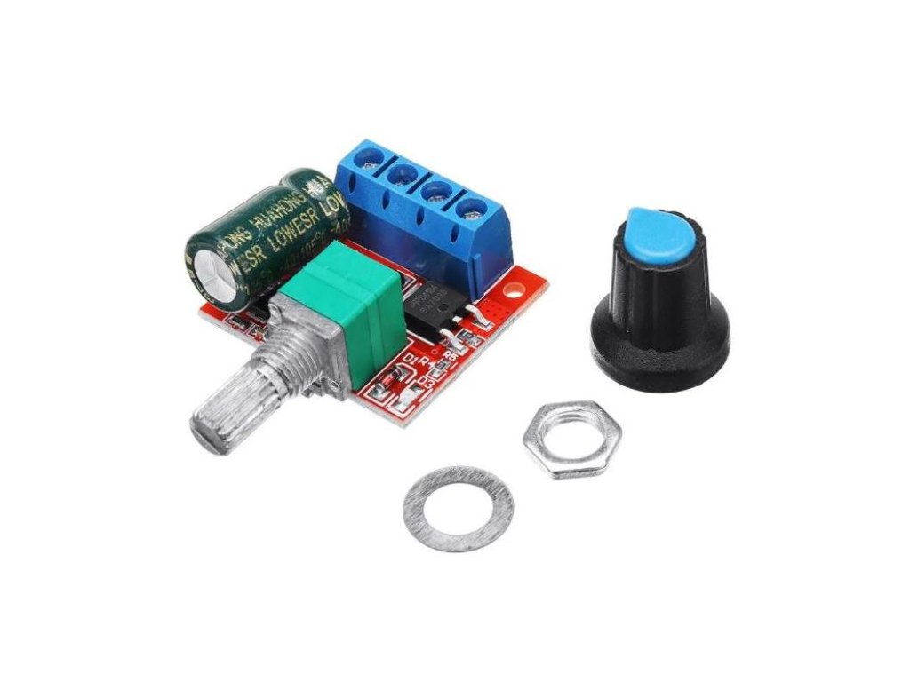 Impulsní PWM regulátor pro DC motory nebo LED světla a pásky. Bez zpětné vazby pro kontrolu nastavených otáček.**Specifikace:**