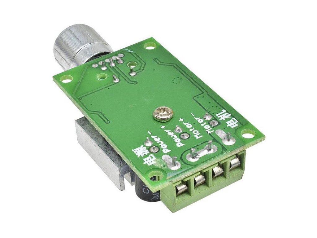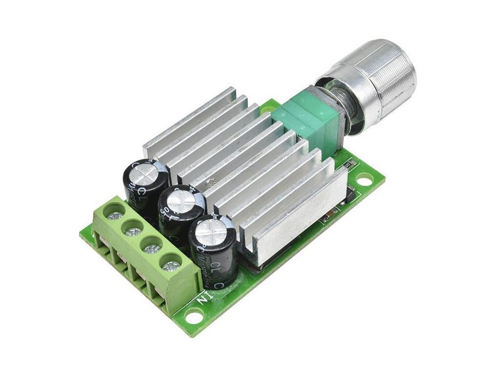 Regulátor otáček PWM stejnosměrných motorů do 10A Impulsní PWM regulátor pro DC motory nebo LED světla a pásky. Bez zpětné vazby pro kontrolu nastavených otáček.**Specifikace:**