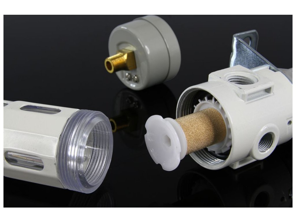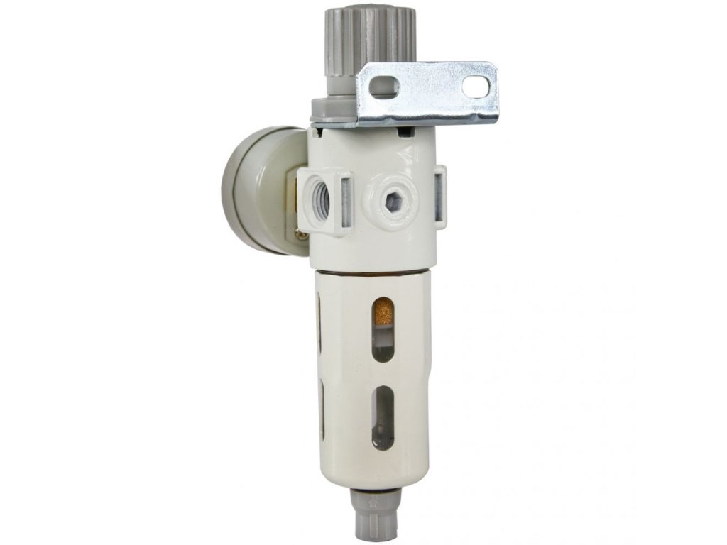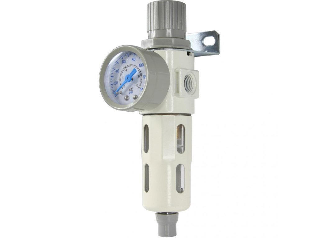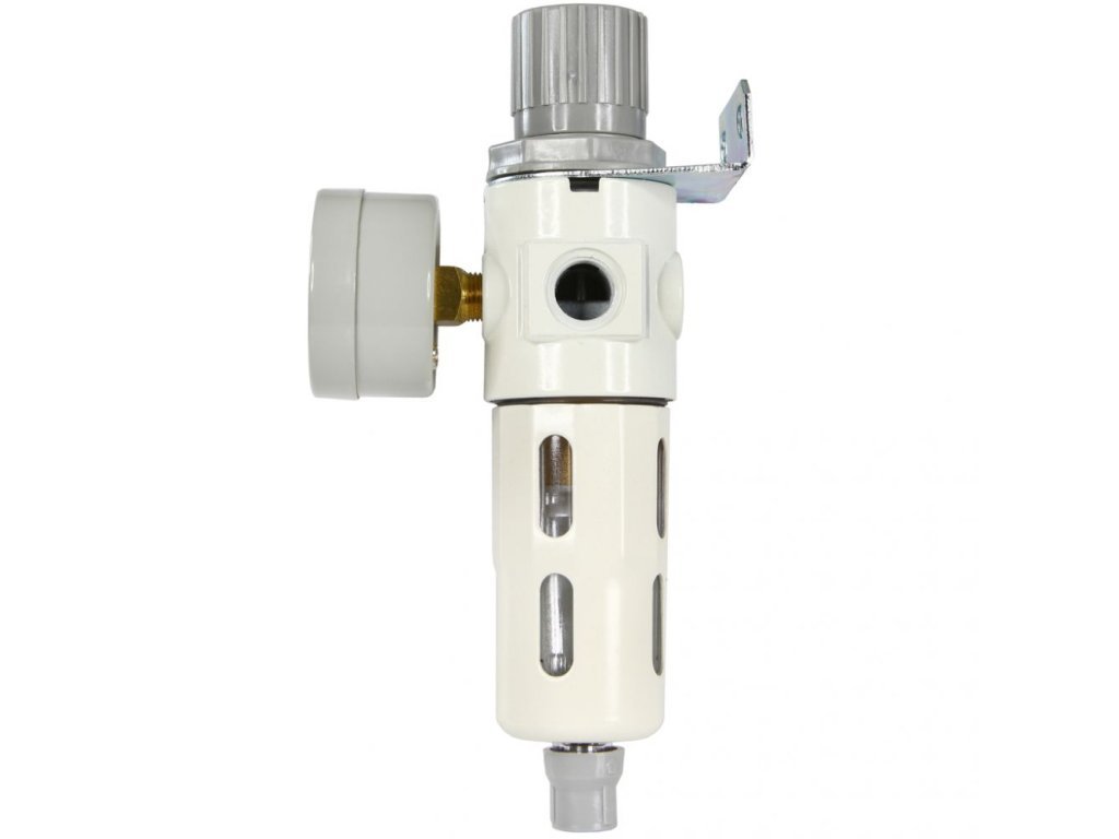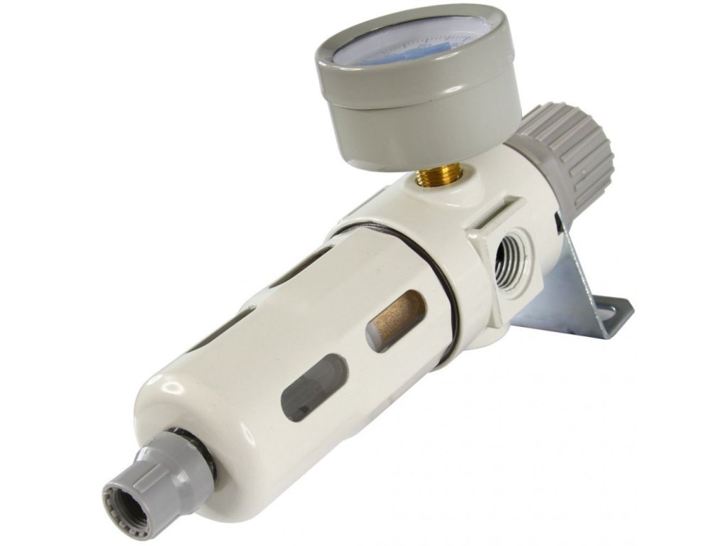 Regulátor tlaku s fi ltrem a manometrem je určen k regulaci tlaku stlačeného vzduchu, dále k odstranění zkondenzované vlhkosti a stopového množství oleje ze vzduchu vycházejícího z kompresoru. Zařízení nalézá uplatnění při používání pneumatického nářadí s požadavkem na suchý vzduch zbavený olejové mlhy, např. pro pneumatické stříkací pistole určené k nanášení nátěrových hmot.