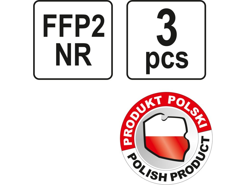 Filtrační protiprašná maska opatřená zpštným ventilem s třídou ochrany P2 podle normy EN149: 2001.
