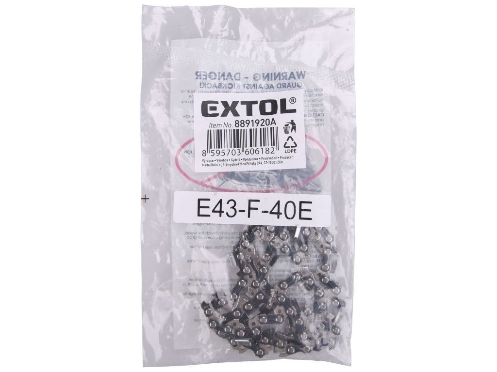 Řetěz pro aku pilu Extol Premium 8891920 a 8891921 je náhradní díl určený pro přesné a efektivní řezání. S roztečí 3/8" LP (Low Profile) a tloušťkou vodícího zubu 1.3 mm a 40 zuby, tento řetěz zajišťuje optimální výkon a dlouhou životnost při práci s dřevem. Je ideální pro uživatele, kteří hledají spolehlivost a účinnost při používání akumulátorových pil. Tento řetěz je kompatibilní s konkrétními modely pil značky Extol a je navržen tak, aby usnadnil údržbu a zlepšil celkovou řeznou kapacitu vašeho nástroje.