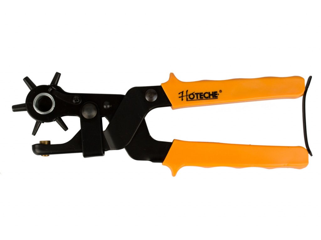 Děrovací revolverové kleště slouží k vysekávání děr v kůži, textilním a plastovém materiálu. Kleště mají 6 vyměnitelných střižníků pro vystřihování otvorů o průměru 2,0 - 4,5 mm.
