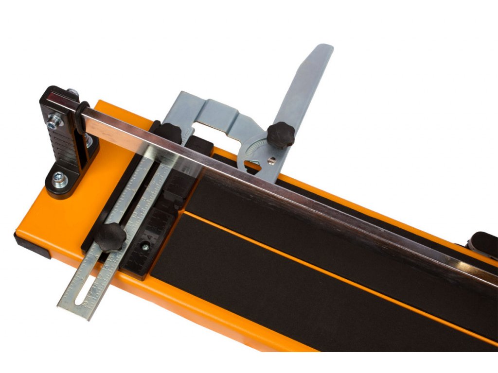 Dosedací plocha je ošetřena molitanem, který zabraňuje posunu dlaždice při řezání a zabraňuje tak možnému poškrabání, nebo nepřesnému provedení řezu. Pevná ocelová kolejnice je zárukou stability pro provedení přesného a rovného řezu. Posuv řezné hlavy je zajištěn kuličkovými ložisky. Práci Vám usnadní i zabudované plastové měřítko.