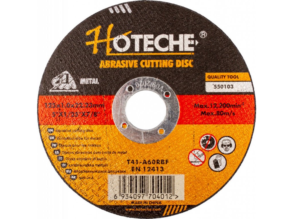Tvar kotouče je plochý s max. provozní rychlostí 80 m/s. Kotouč dosahuje max. 12 200 otáček za minutu.