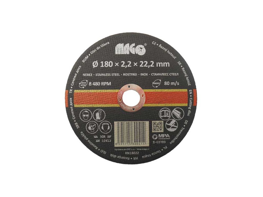 Řezný kotouč na řezání nerezové oceli MAGG RN18022Průměr: 180 mm