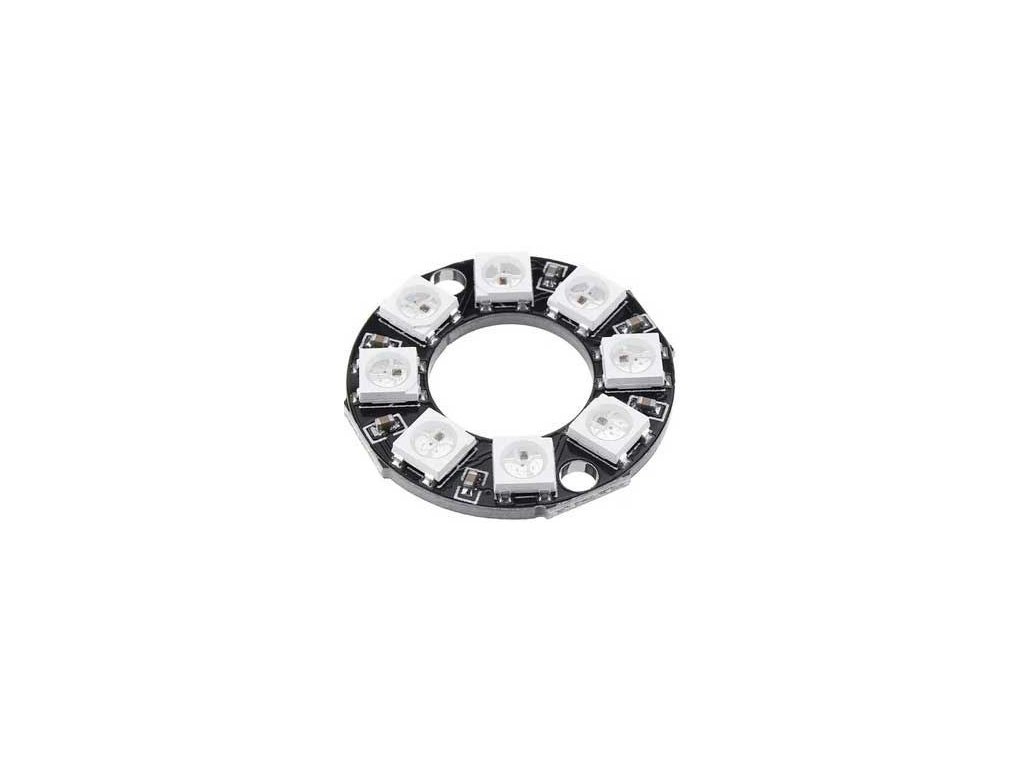 RGB LED modul-kruh 8bit Neopixel s WS2812 Modul LED s adresovatelnými LED diodami WS2812B.Všechny LED lze nezávisle ovládat pomocí jediného pinu mikrokontroléru.