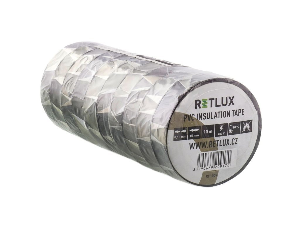 Izolační pásky RETLUX jsou vyrobeny z PVC, jsou široké 15mm a délkou návinu 10 metrů. Mají vysokou elektrickou pevnost v tahu, zaručují vodotěsnost spoje a vyhovují všem potřebným normám. Balení obsahuje vždy deset kusů kotoučů pásek.