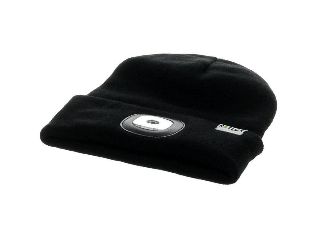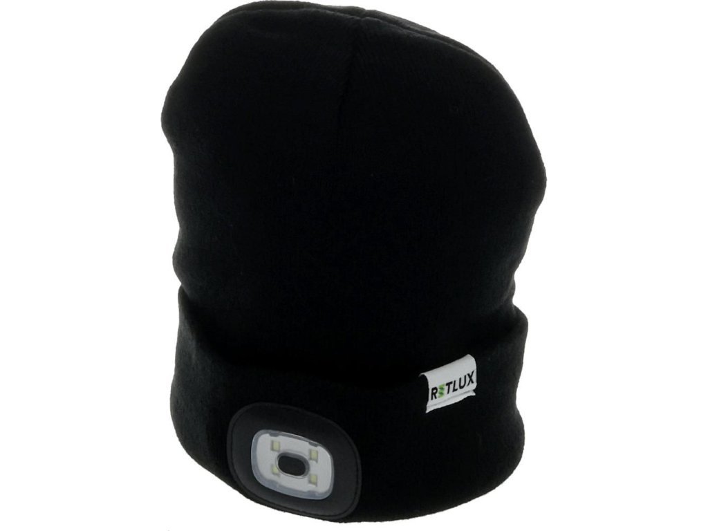Svíticí nabíjecí čepice černé barvy s LED svítilnou RETLUX. Světlo lze jednoduše vyjmout a čepici vyprat. Zahřeje i posvítí. Stylová čepice RETLUX 2 v 1.