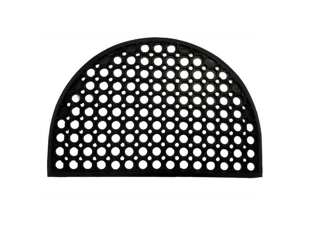Gumová rohož s děrováním, půlkulatý tvar.Velmi praktické rohožky z přírodní gumy se používájí v exterieru i v interieru.