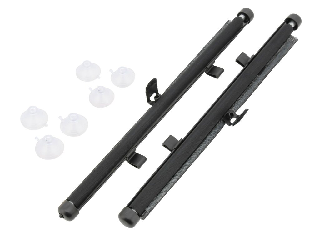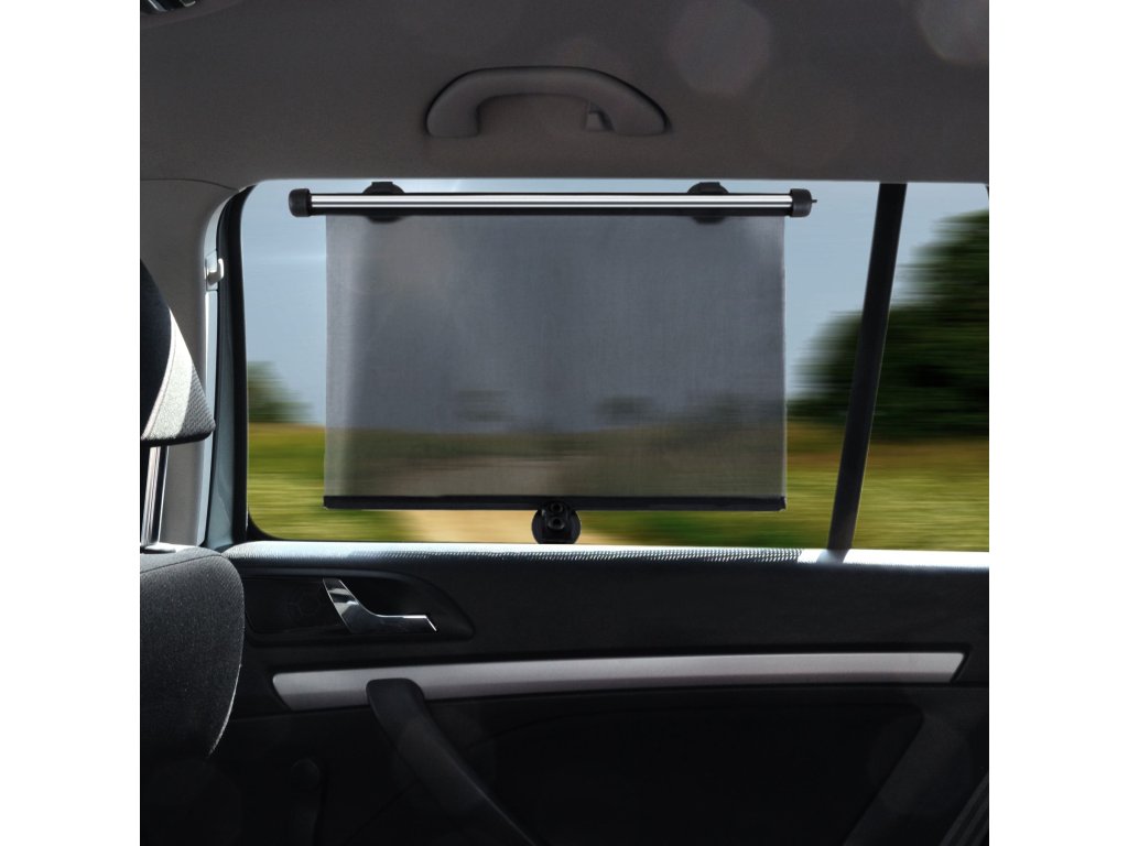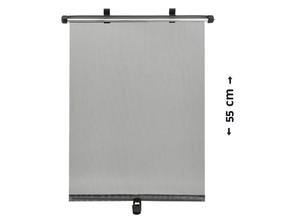 Určeno k montáži na zadní boční okna automobilu, připevnění nasunutím na horní hranu bočního okna, nebo přiloženými přísavkami. Roletku lze ve vysunuté poloze fixovat zaháknutím za přísavku a použitím aretace. Způsob perforace materiálu zajišťuje absorpci cca 70% slunečních paprsků Materiál polyester, sada 2 ks, s přísavkami, Velikost vytažené roletky 42 x 55 cm, šířka celé roletky včetně uchycení: 46 cm.
