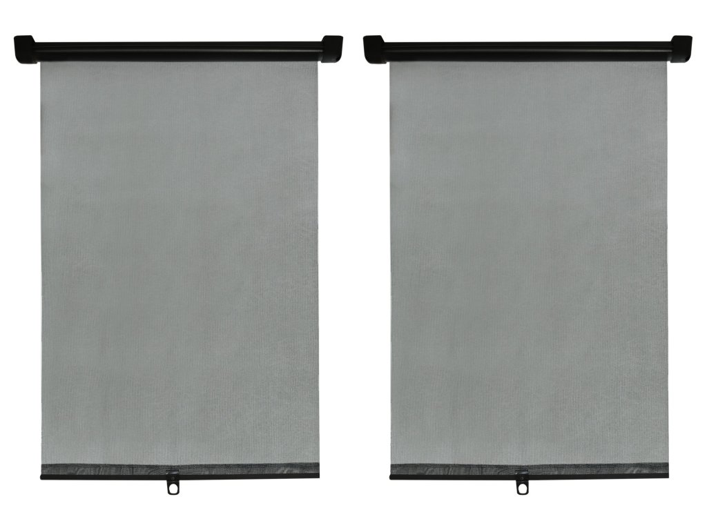 Sada 2 kusů slunečních roletek určených k použití na oknech automobilu.2x45cm. Způsob perforace materiálu zajišťuje absorpci cca 70% slunečních paprsků a zároveň umožňuje řidiči maximum viditelnosti jak ve dne, tak i v noci. Barva černá. Délku vytažené clony: 55,5 cm.
