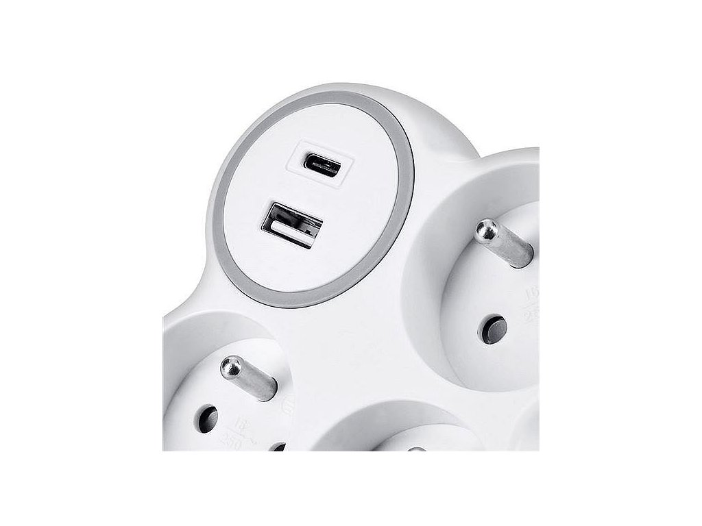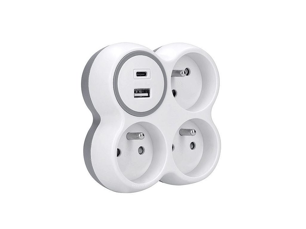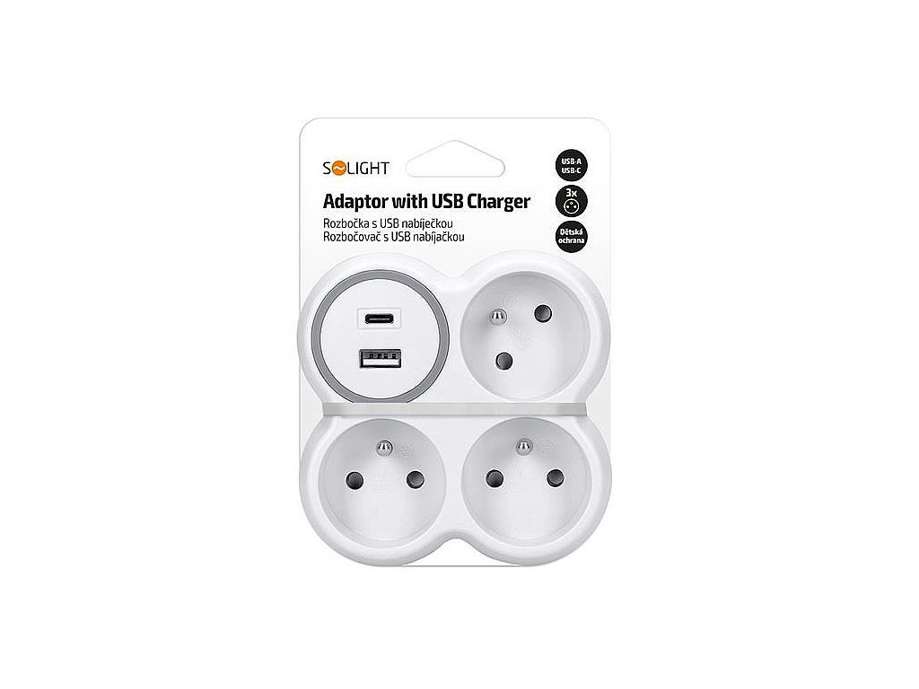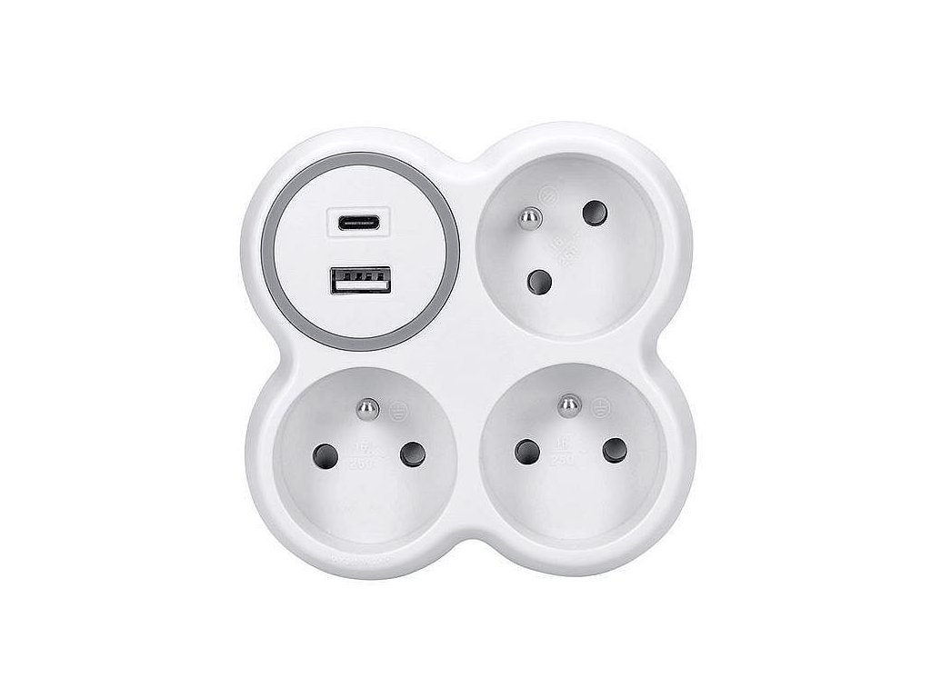 Rozbočka 3x15A, bílá-šedá, USB nabíječka A+C