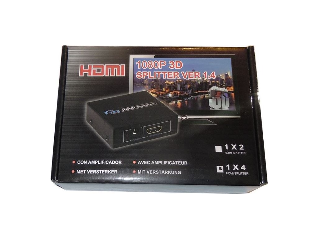 - 1x4 HDMI rozbočovač podporuje rozlišení Full HD 1080p a 3D