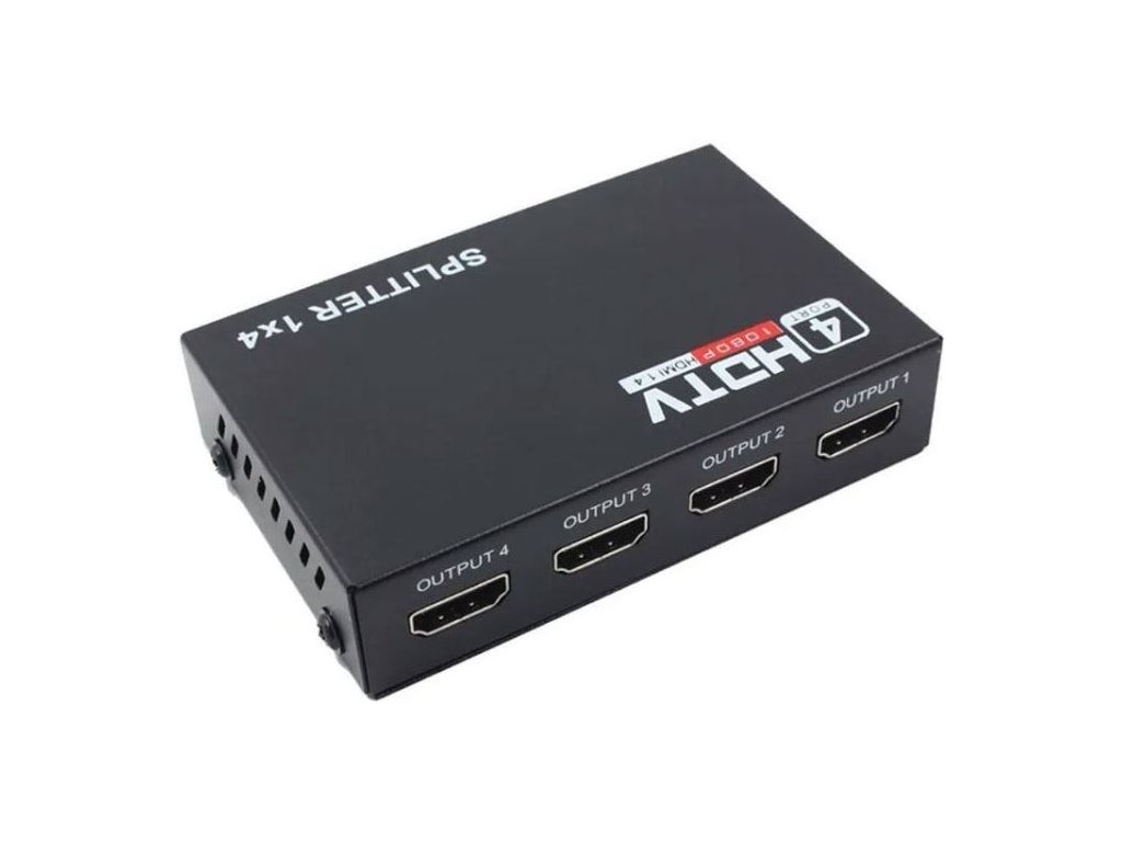 - Vysoce kvalitní HDMI rozbočovač s jedním vstupem a čtyřmi výstupy