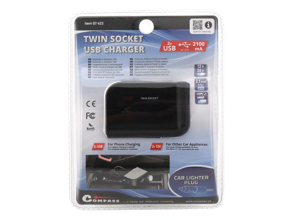 Umožňuje rozdvojení klasické zásuvky automobilového zapalovače. Navíc je adaptér opatřen 2x USB zástrčkami vhodnými pro MP3 přehrávače, mobilní telefony a další zařízení, která se nabíjejí či napájejí běžným USB zdrojem 5V až do příkonu 2100mA.