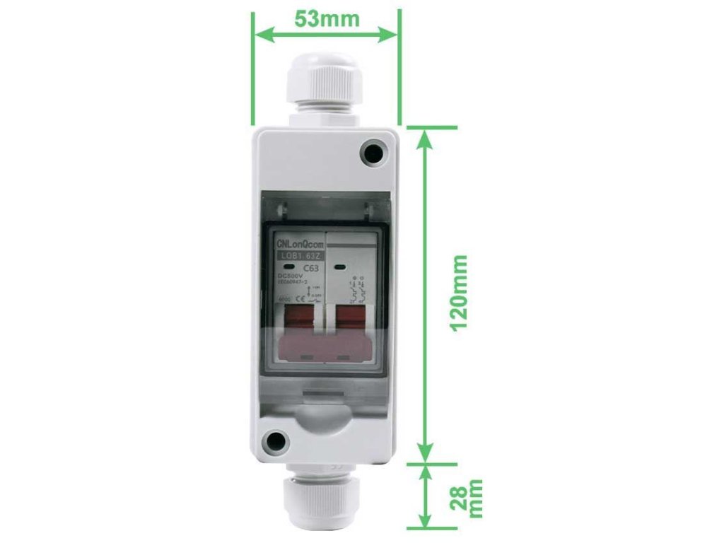 Rozvaděč DC s jističem 50A/C 2P LQB1-50Z /DC string box 500V/ pro FVE Ochrana stringu fotovoltaických panelů s napětím až 500VDC.**Specifikace:**