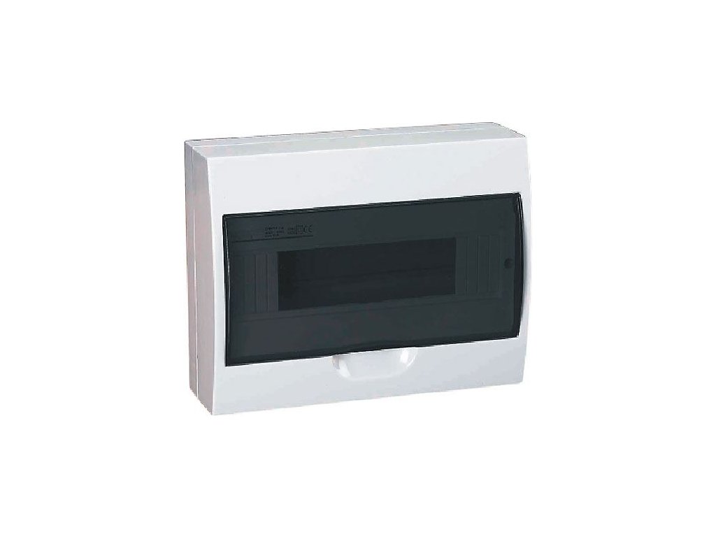 Rozvaděč TSM-12 plastový 1x12P nástěnný Rozměry 256mm(D)x210mm(V)x100mm(H),kouřová transparentní dvířka, jmenovité napětí 400V, kovová DIN lišta, svorkovnice, krytí IP40, třída izolace IIDoplňkové parametry