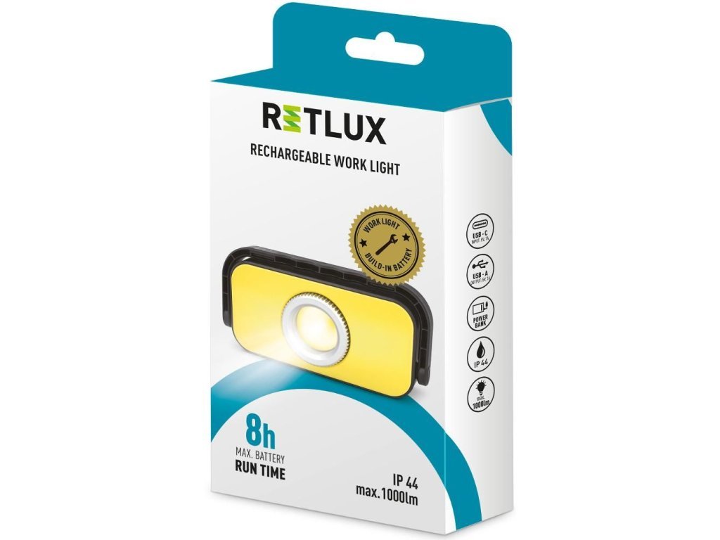 Pracovní svítilna s powerbankou. Pracovní svítilna Retlux RPL 200 vyniká kvalitními materiály, vysokým světelným tokem a stupněm krytí IP44, takže se hodí i do práci za deště. Uplatnění najde při pracích v profesních činnostech, domácnosti, garáži, nebo na zahradě. Výkonný LED zdroj se světelným tokem 1000 lm zajistí dokonalé osvícení pracovního prostoru! Pro maximální komfort je svítilna Sencor SLL 201 opatřená také madlem se silným magnetem, díky čemuž ji lze připevnit snadno na jakékoliv místo. Svítilna s funkcí powerbanky s velkou kapacitou vestavěné baterie 4400 mAh. Pomocí portu MicroUSB lze připojit třeba smartphone nebo jiné mobilní zaízení.