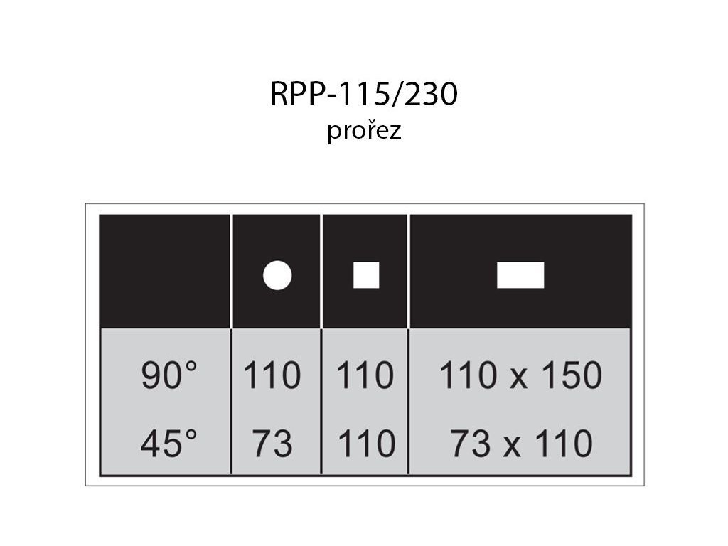 - maximální řezaný materiál (š x v):90°- 110 x 150 // 45°- 73 x 110 mm