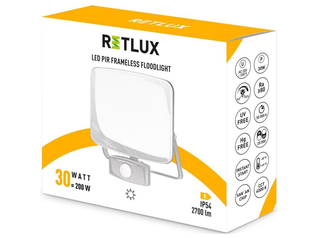 RSL 256 LED Reflektor 30W, 4000K, PIR senzor RETLUX