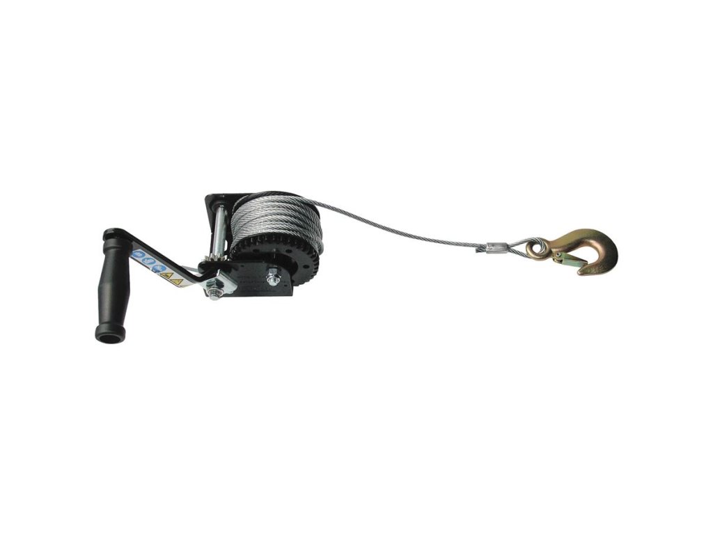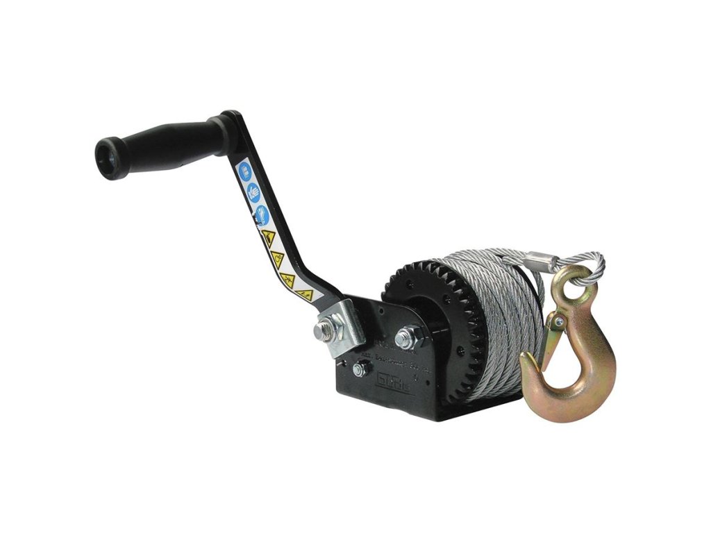 Ruční lanový naviják, určený k přitahování břemen (→ maximální zatížení v tahu: 360 kg).