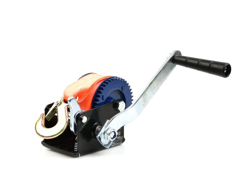 Ruční naviják s ráčnovým pásem o šířce 50 mm v délce 5 m s maximálním zatížením v tahu 363 kg. Naviják je určen k přitahování břemen např. na přívěsné vozíky, korby aut. Naviják je určený především pro tahání a přesouvání břemen. Naviják má ráčnový mechanismus ovládaný klikou.