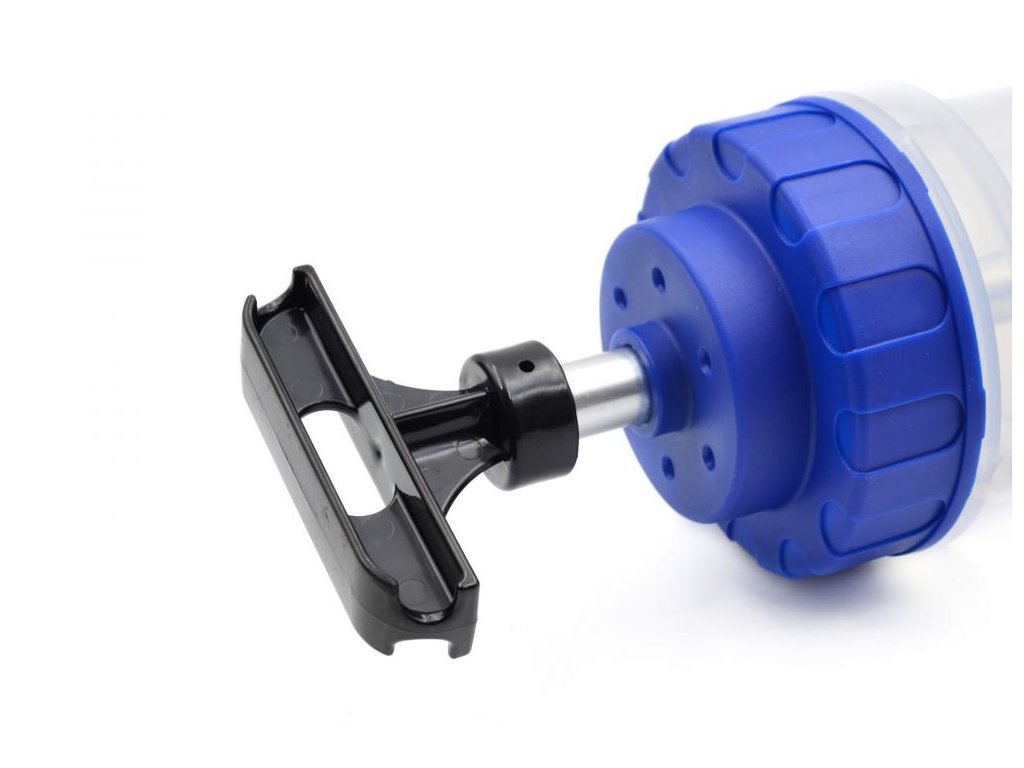 Ruční odsávačka provozních kapalin je vybavena průhlednou nádrží o objemu 1500 ml. Pestík je vyroben z pryže odolné vůči olejům a mazivům. Odsávačku lze uzavřít otočením injekční hlavy.
