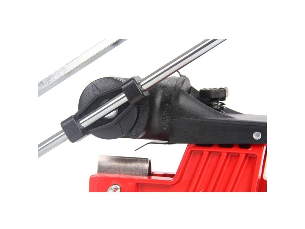 - Precizní ruční přístroj na broušení řetězových pil k montáži na vodicí kolejničky při montování řetězu.