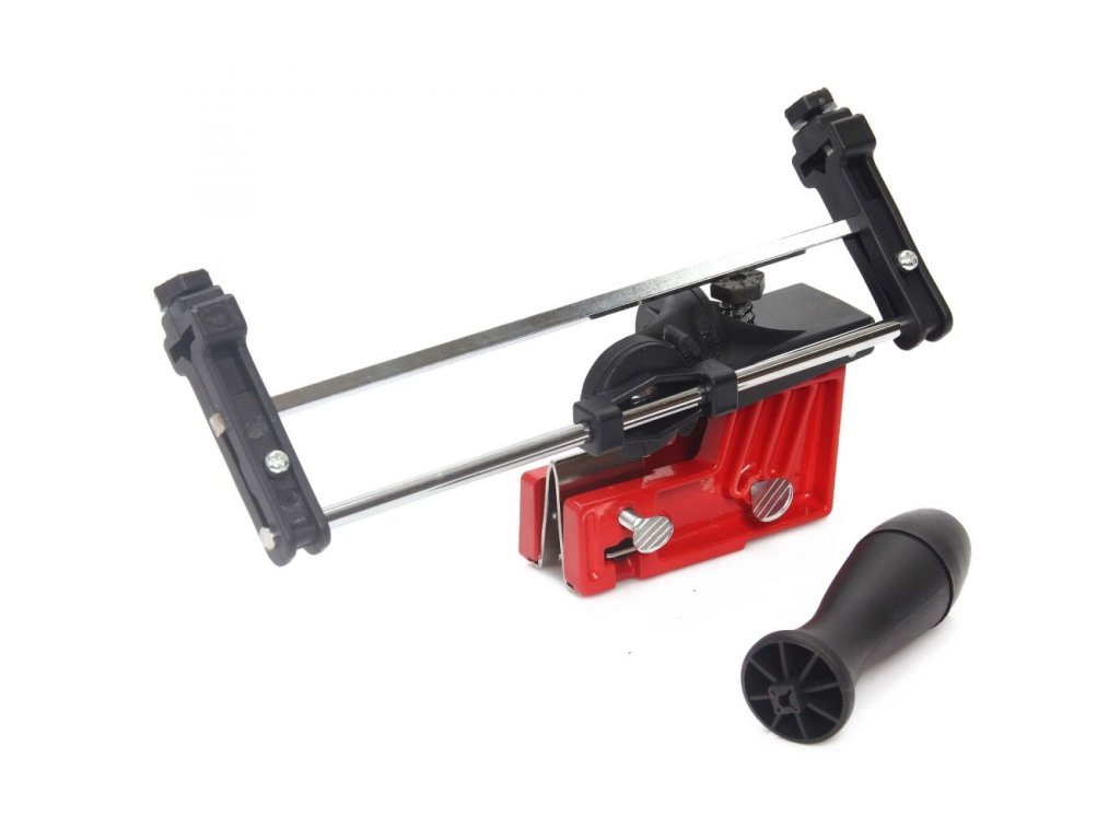 Ruční bruska pilových řetězů běžných typů s odpovídajícím kulatým pilníkem. Jednoduchá a přesná obsluha díky upevnění.