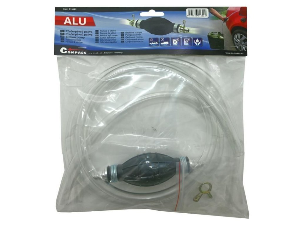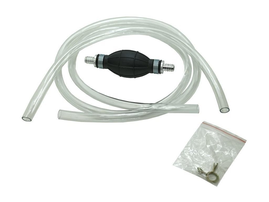 Praktický ruční přečerpávací pumpa, vhodná pro přečerpávání vody, olejů i paliv. Pomocí pumpy lze snadno vytvořit v hadicích podtlak, potřebný k zahájení samotného přečerpávání.