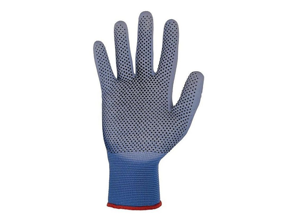 Pletené bezešvé rukavice s PVC terčíky v dlani. Dlaně a prsty povrstveny polyuretanem, pružná manžeta. Doporučené aplikace: automobilový průmysl, elektronika, logistika, skladování, montáž a balení malých součástek, zahrada, lehké montáže.