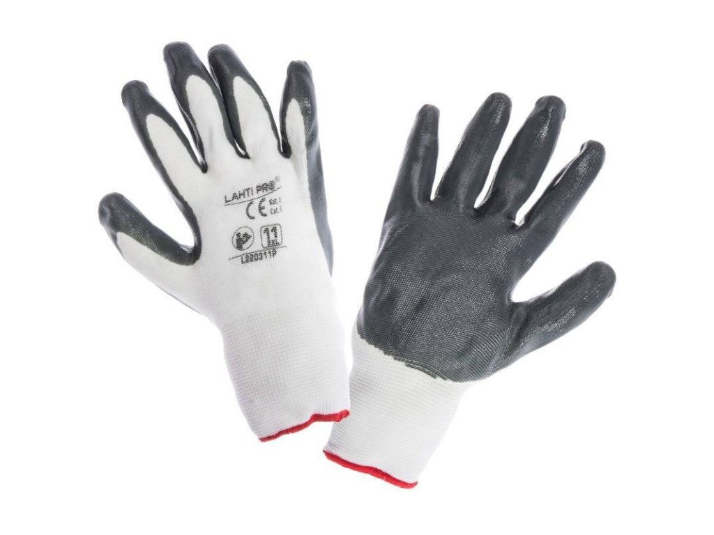 Rukavice NITRIL, šedo-bílá, vel. 11, LAHTI PRO