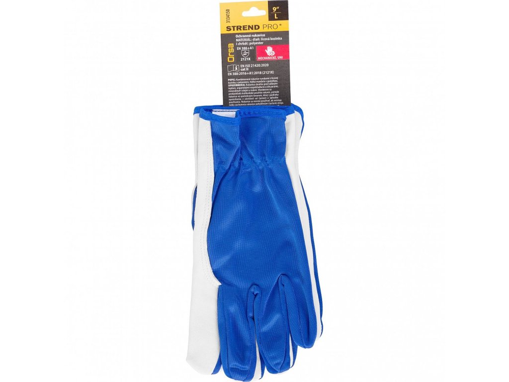 Kombinované ochranné rukavice Orsa mají dlaň vyrobenou z lícové kozinky a záda z polyesteru