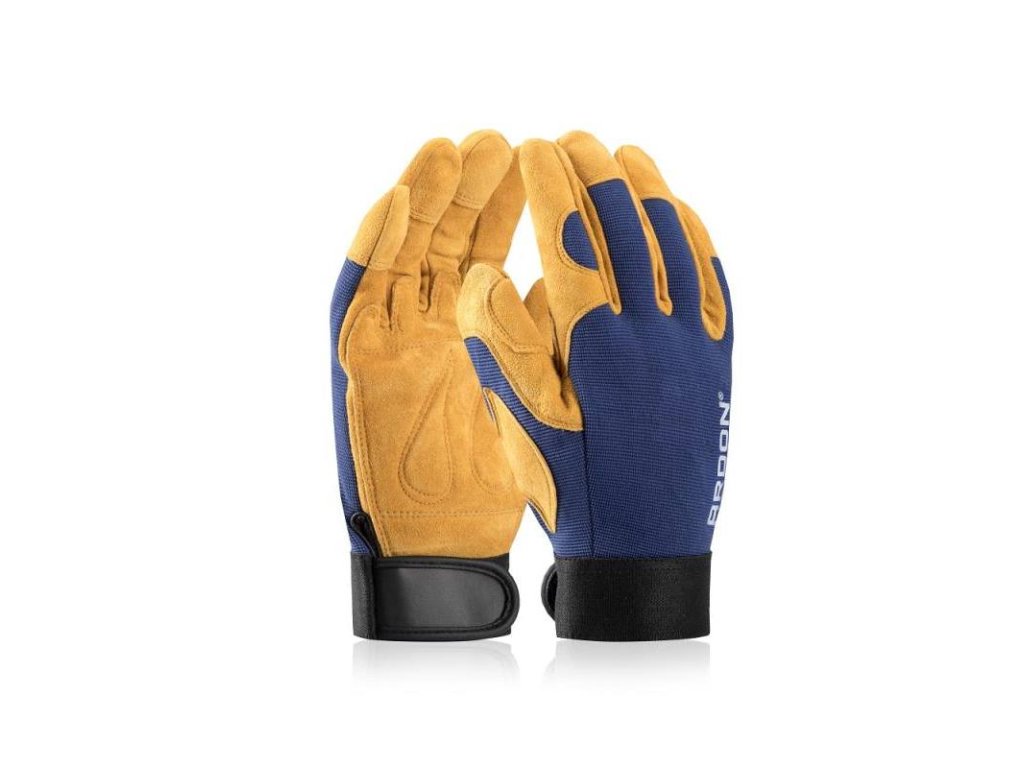 - Základním materiálem, který chrání plochu dlaně i prstů, je obrácená kvalitní kozinka. Tento materiál odolává mechanickému namáhání, nepropouští vodu ani oleje a zároveň dostatečně izoluje tepelně. V dlani rukavice jsou všité vycpávky, které omezují vznik otlaků. V rukavici můžete dlouhodobě zacházet se strojními prvky nebo pracovním náčiním bez bolestivých nebo nekomfortních projevů na jemné pokožce.