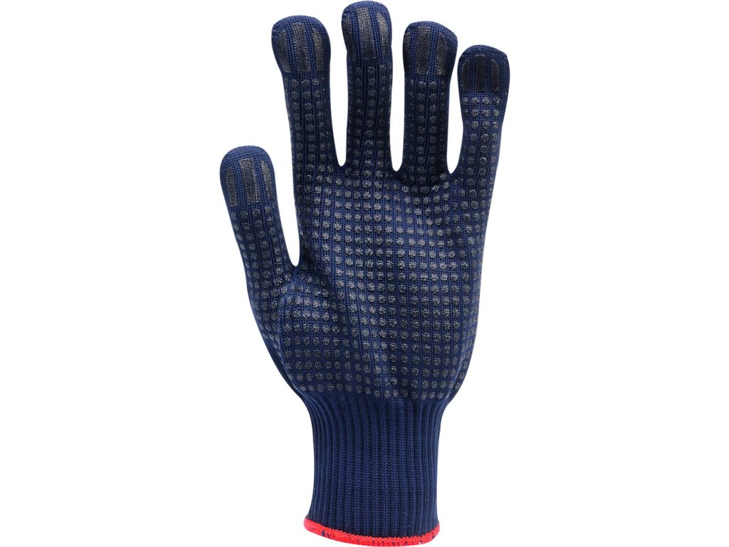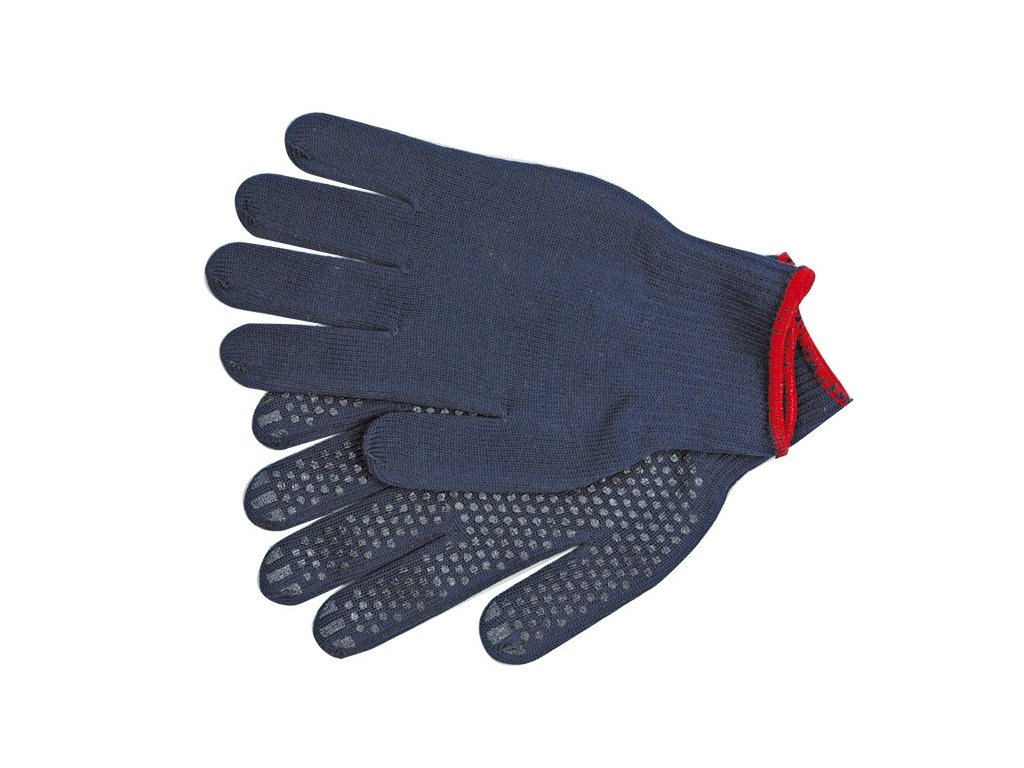 Rukavice jsou zhotoveny z bavlny a polyesteru zvyšujícího přilnavost, jsou zakončeny lemem a jsou odolné proti oděru.