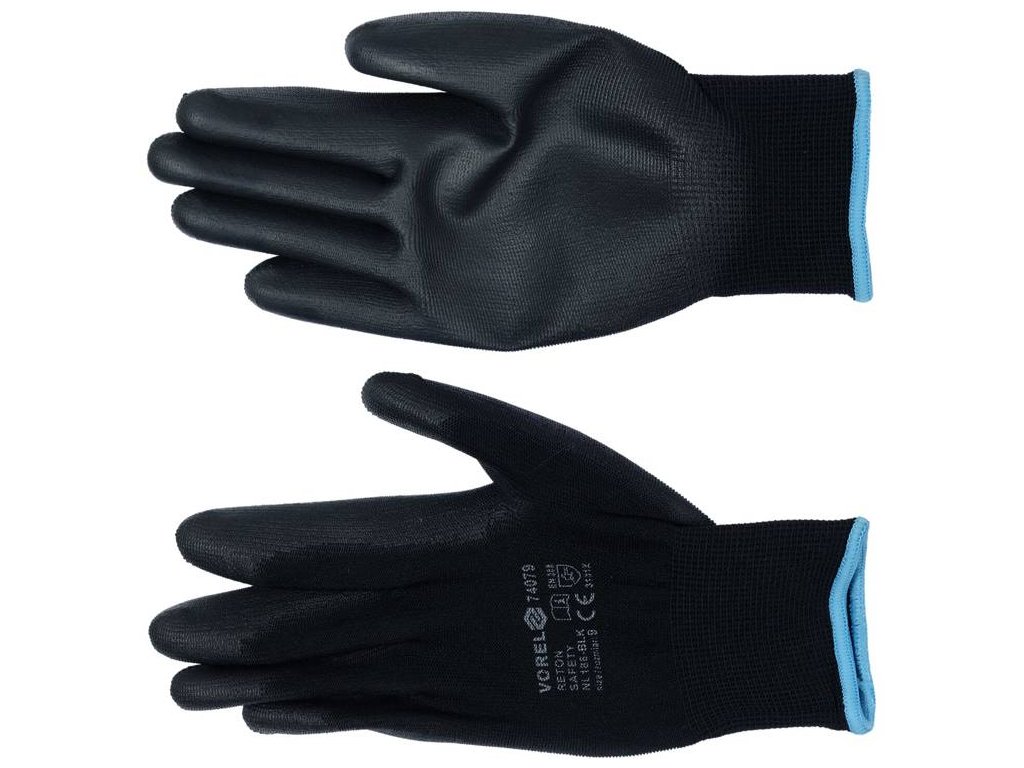 Rukavice jsou zhotoveny z polyesteru (steh 13) potaženého polyuretanem a zakončené odolným lemem.