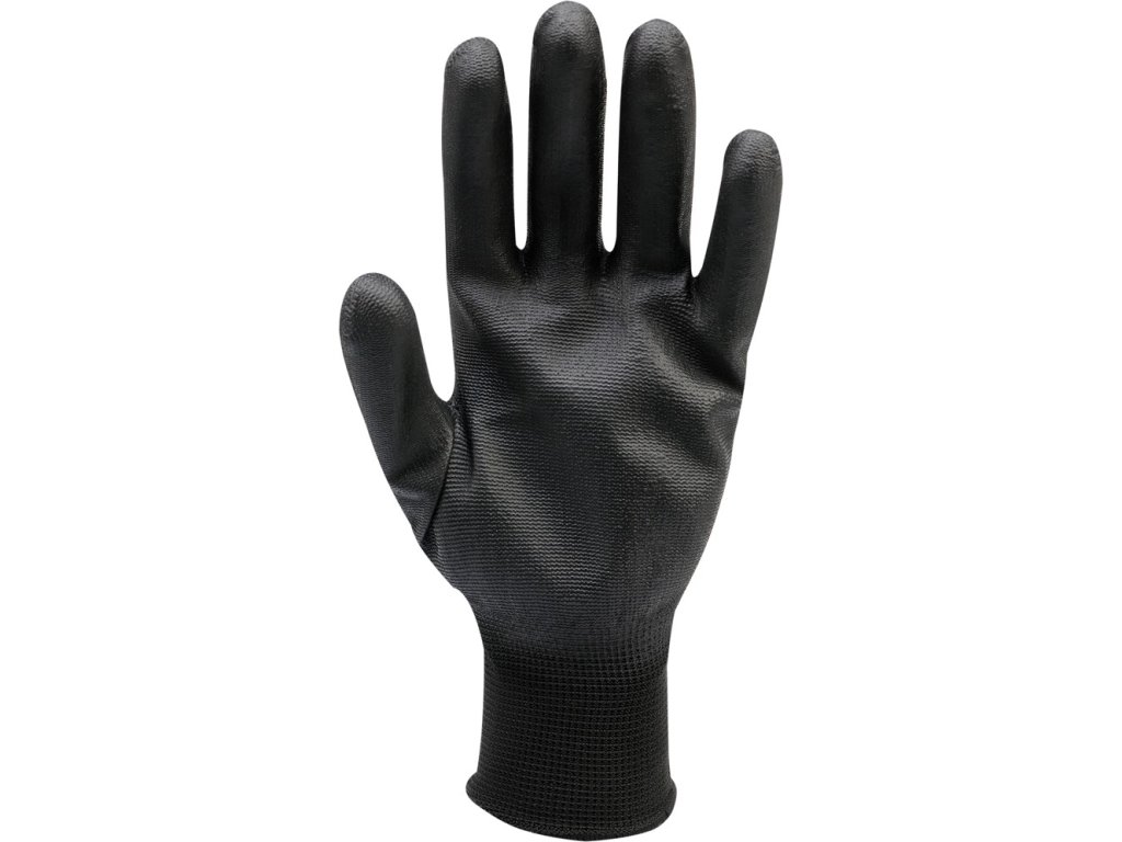 Rukavice jsou zhotoveny z polyesteru (steh 13) potaženého polyuretanem a zakončené odolným lemem.