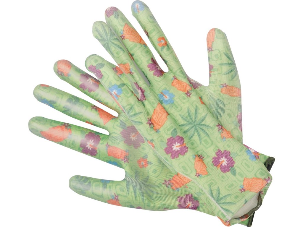 Rukavice zahradní zelené s květinami vel. 9