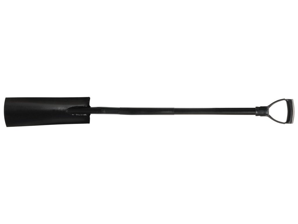 Drenážní profilovaný rýč černé barvy, který je dodáván s kvalitní násadou. Typ DY. Rukojeť násady je potažená gumou pro lepší uchopení.