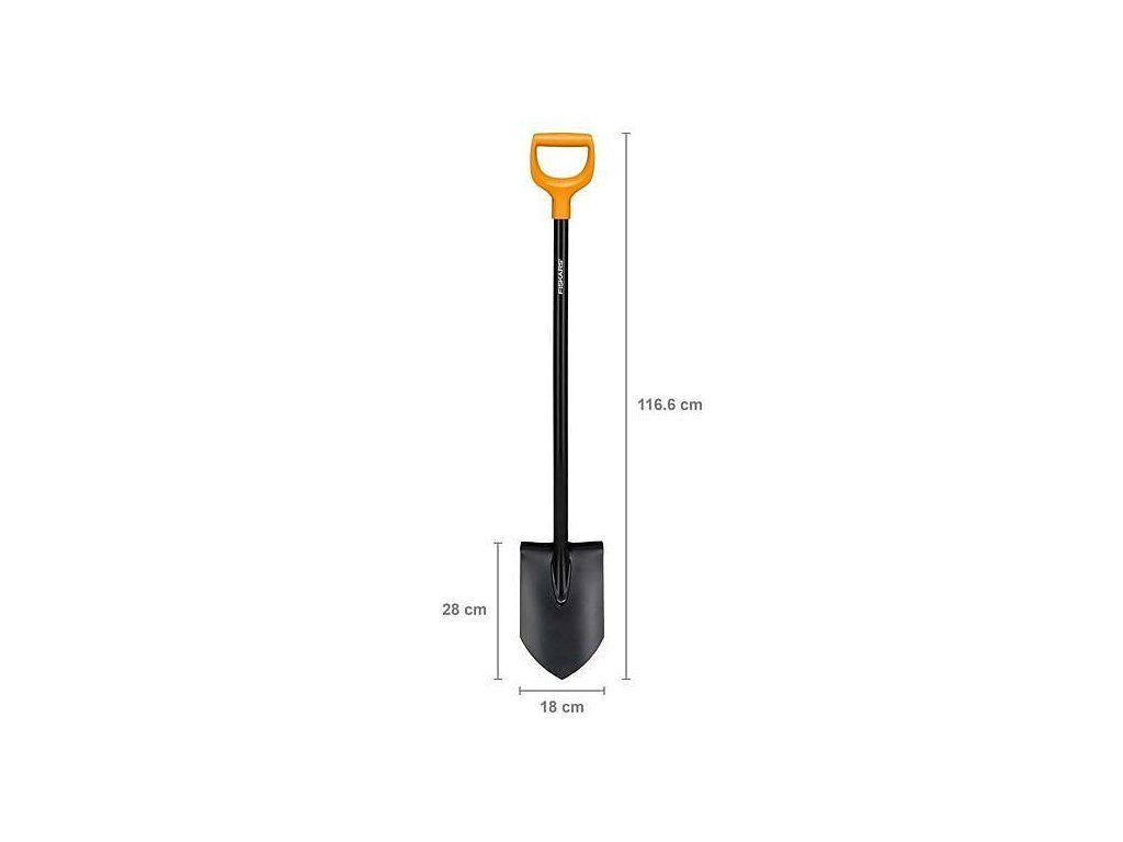 Hlava rýče FISKARS je vyrobena z bórové oceli, což zajišťuje vysokou pevnost a odolnost. Tato hlava je pevně přivařena k silné kovové násadě, která zvyšuje celkovou odolnost nástroje. Rukojeť ve tvaru písmene D je ergonomická a vhodná pro všechny velikosti rukou, ať už s rukavicemi, nebo bez nich. Rýč Solid™ je cenově dostupným nástrojem, který nabízí kvalitu potřebnou pro každou zahradu.