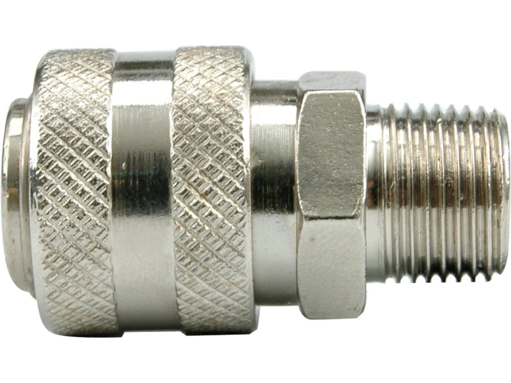 Rychlospojka s vnějším závitem 3/8" pro pneumatické nářadí. Použití je snadné a rychlé pro připojení nářadí k hadici.