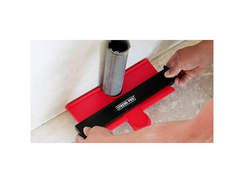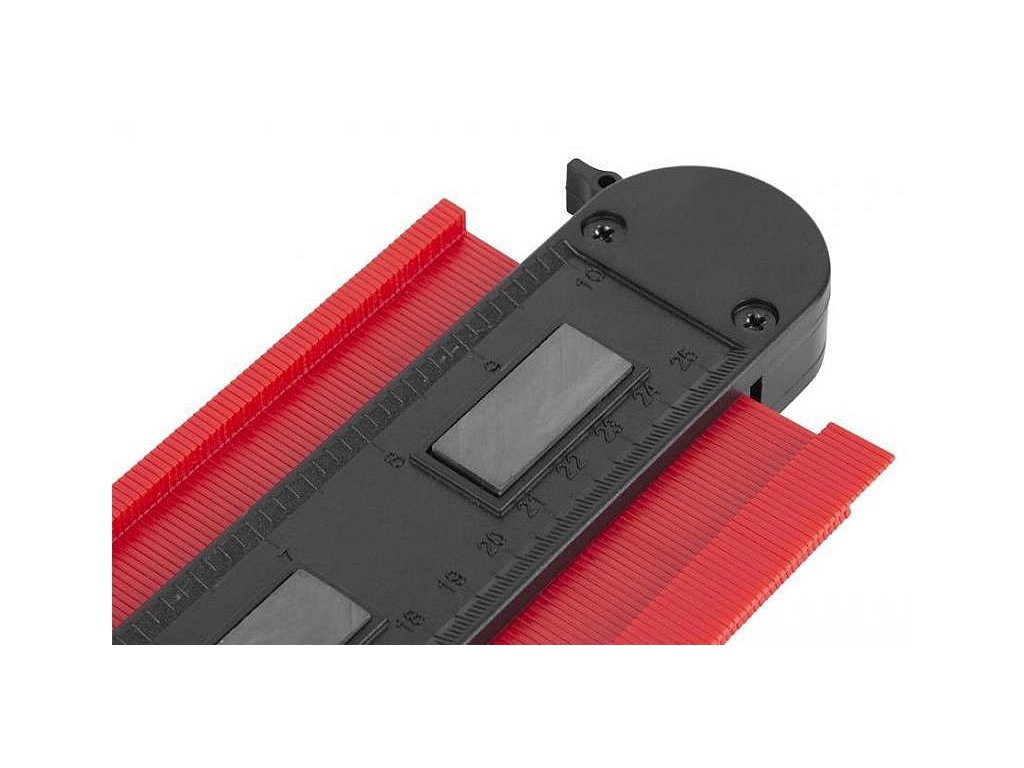 Tato šablona s uzamykacím mechanismem a magnety vám umožní jednoduché přenesení tvaru profilu předmětu na opracovávaný předmět. Přiložením šablony k předmětu se lamely přizpůsobí jeho tvaru a okopírují tvar, jenž je možné přenést na opracovávaný předmět. Šablona má na spodní části magnety pro lepší uchycení na kovových předmětech a funkci uzamčení obkresleného tvaru, která znemožní náhodnému posunutí lamel. Výborná pomůcka pro obkladače, podlaháře a mnoho jiných profesí.