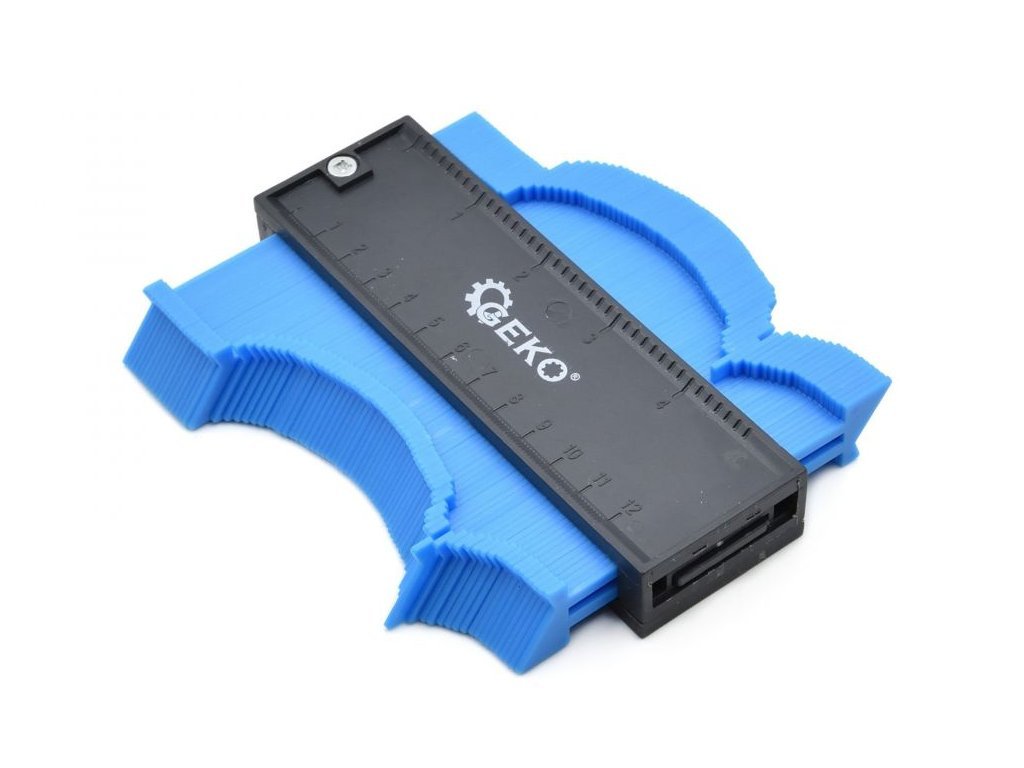 Plastová obrysová šablona pro přenášení tvarů profilů předmětů. Praktická pomůcka například pro karosáře, nebo při pokládání plovoucích podlah. Přiložením lamel šablony k předmětu břity lamel okopírují obrys, který je možno přenést jinam.
