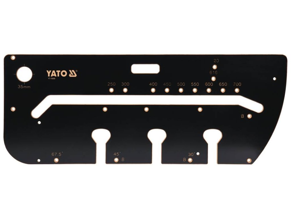 Frézovací šablona pro frézování spojů pracovní desky. Vyrobena z laminované MDF desky.